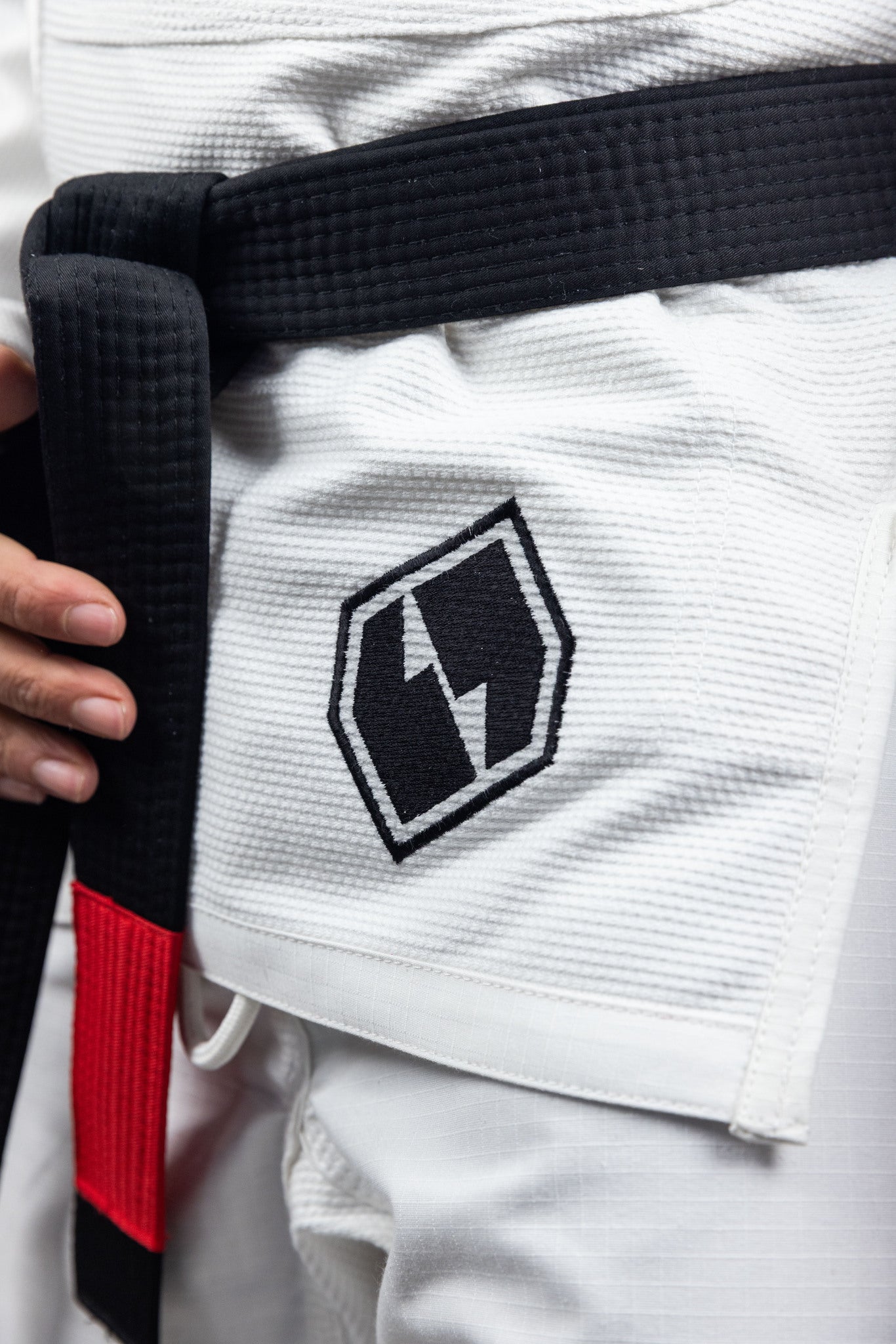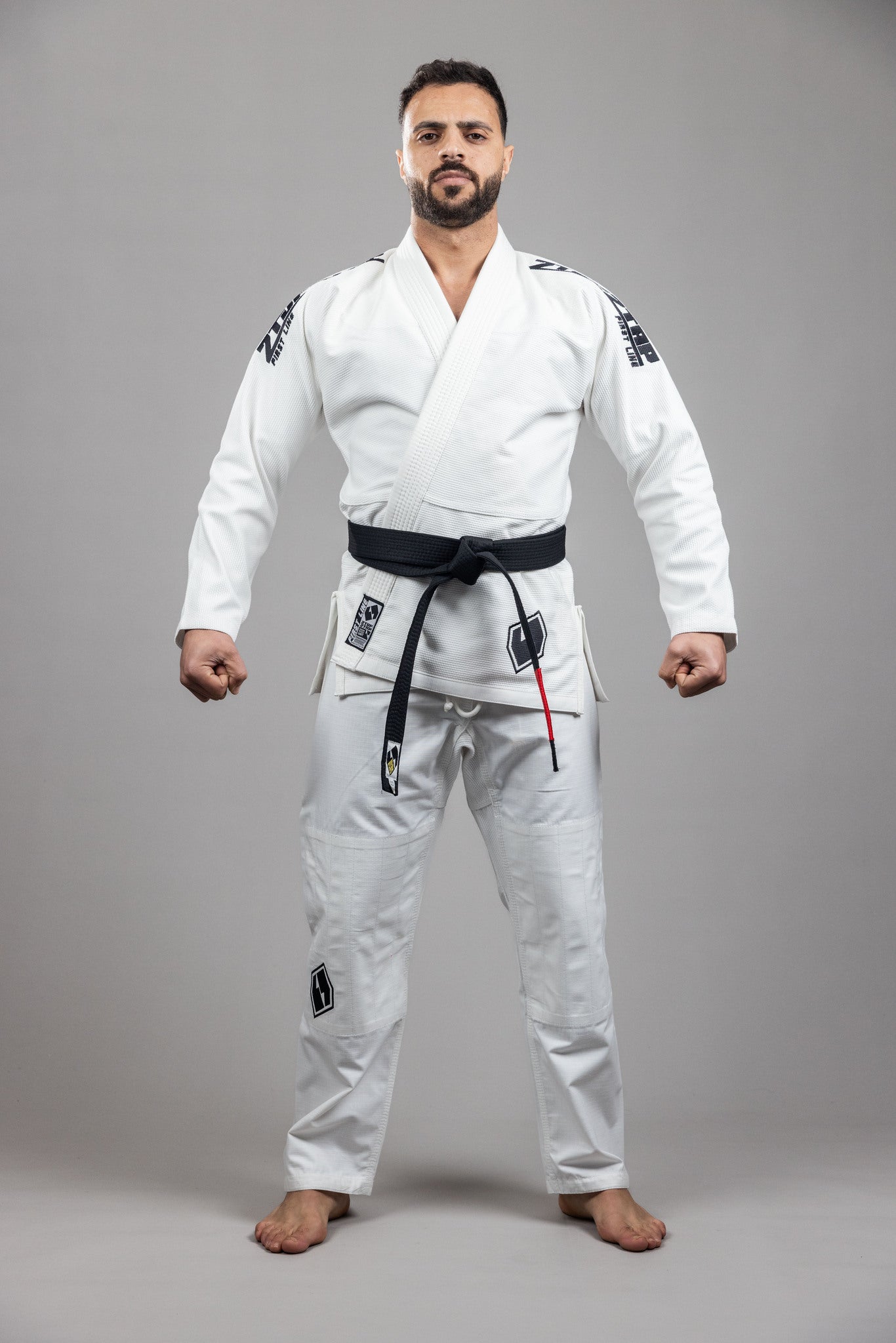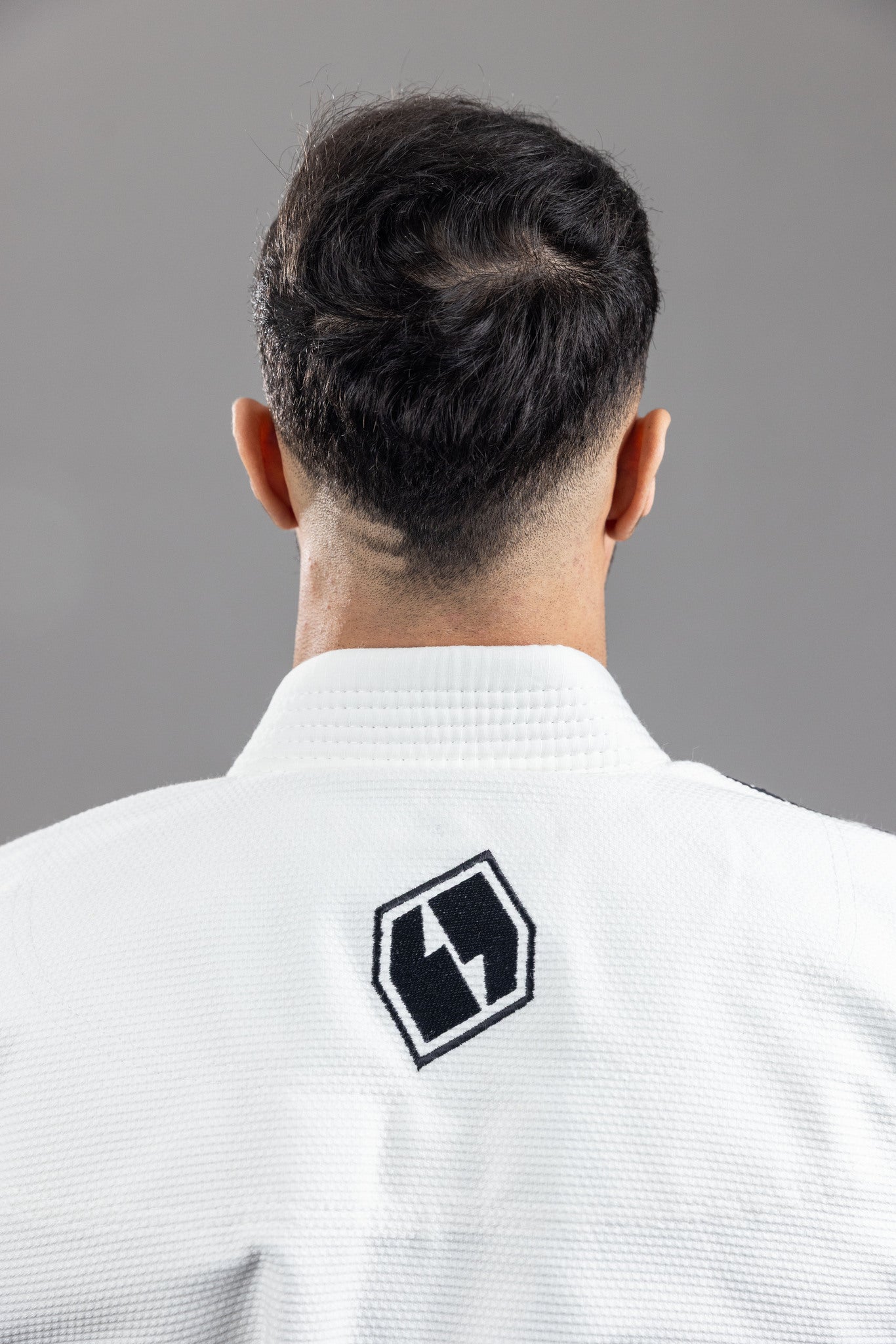 The First Line is built for practitioners who want a gi that represents both discipline and resilience. Crafted from 450-gram pearl weave cotton, it offers the perfect balance of strength, breathability, and comfort—ideal for long training sessions and competition alike. Its clean white design with bold patchwork detailing reflects a modern yet traditional aesthetic, making it a standout choice on the mats.