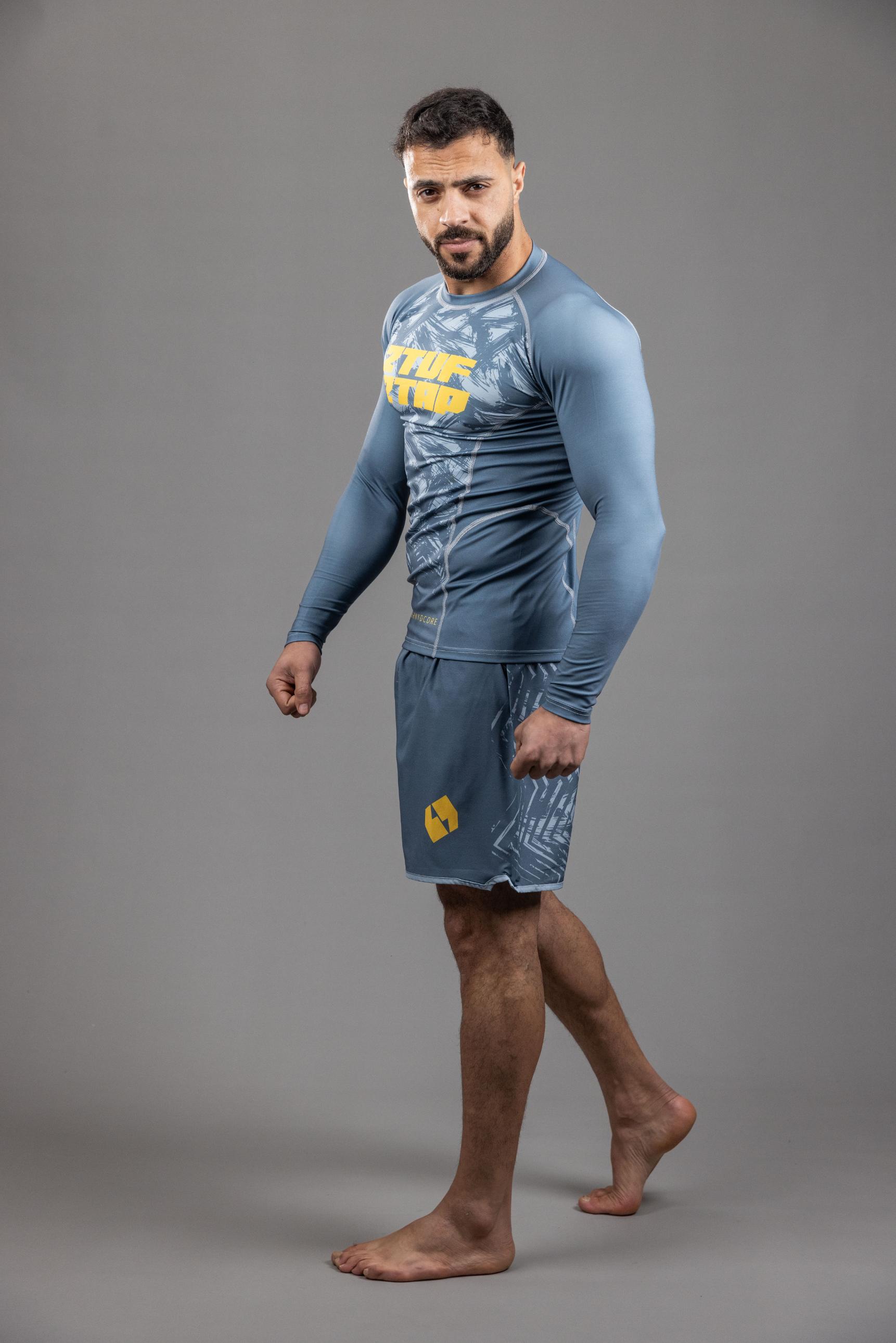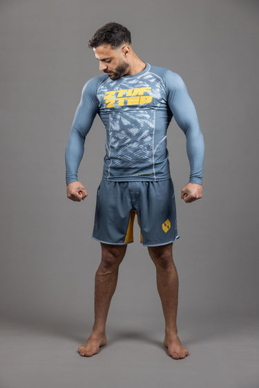 Grind Core' MMA RashGuard Top Grey Yellow